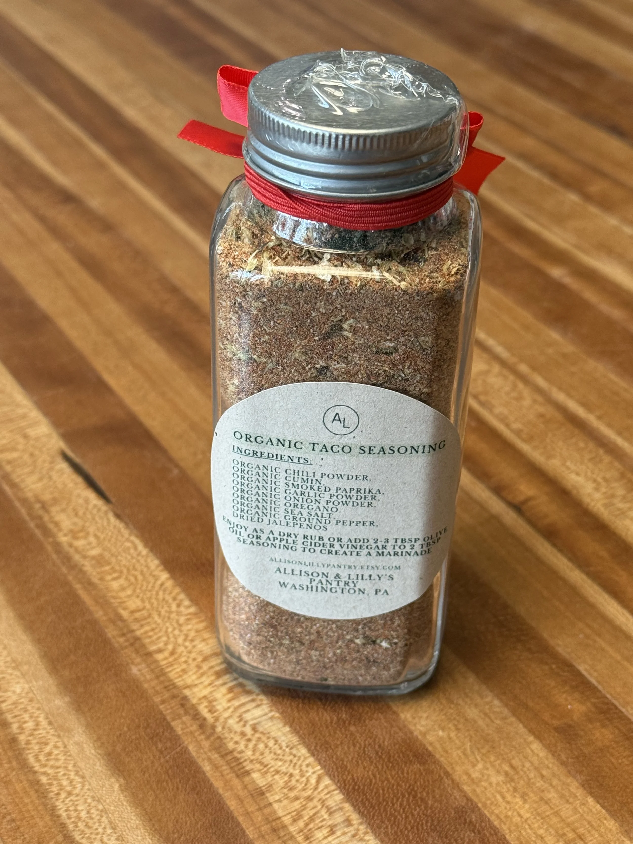 Organic chili powder, organic cumin, organic smoked paprika, organic garlic powder, organic onion powder, organic oregano, organic ground pepper, sea salt.